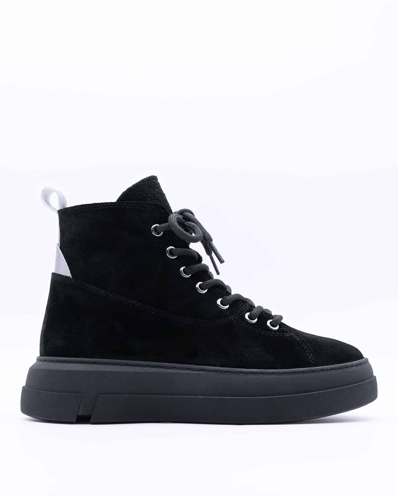 Спортни изчистени боти от естествен велур с цип и връзки в черен цвят